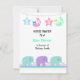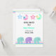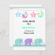 Um design bonitinho com uma corda de lua e estrelas e elefantes bebês acentuados por uma borda de listras moles. Personalize com todas as informações do seu chá de fraldas conforme desejado.