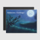 Mande a saudação perfeita com este design de Halloween vintage apresentando a lua brilhante à noite com árvores e grama em tons azuis e verdes.
