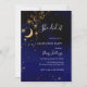 Lua e estrelas convite para festa de formatura. Cor azul real, preto e dourado. Uma festa de mestrado perfeita sobre lua cósmica e estrelas. Para personalização mais avançada deste design, basta selecionar o botão "Personalizar o computador" acima! Também disponível como download para sua conveniência.