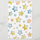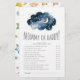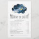 Esta Lua e Estrelas Mamães de Chá de fraldas ou Jogo de Pai são perfeitos para um chá de fraldas simples. A design branca moderna apresenta uma forma de nuvem de marinho azul-d-água, enfeitada com uma lua crescente amarela e estrelas dispersas. Você pode personalizar as perguntas do jogo clicando no botão "personalizar".
