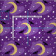 Na moda e tecido mágico de Halloween com lua, estrelas, nuvens, morcegos negros e um fundo roxo!