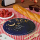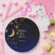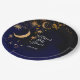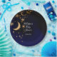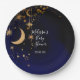 Combine seu tema com uma placa de papel coordenadora. A lua e a festa de estrelas rodeiam pratos de papel. Para mais personalização, clique nas ferramentas de edição.