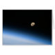 Uma lua gigante visível acima da atmosfera terrestre fotografada por um membro da tripulação STS-128 no Space Shuttle Discovery em 30 de agosto de 2009. Imagem cortesia da NASA.