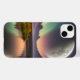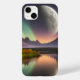 Lua pendurada sobre a paisagem montanhosa com Aurora Borealis refletida na água Autumn tree AI Art criada por minx267