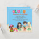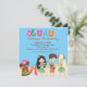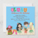 Comece a comemorar com este adorável convite do Luau. Seja um churrasco de quintal ou uma festa de aniversário de criança, este é o convite perfeito para você! Tem letras brilhantes e coloridas soletrando "LUAU" no centro com uma flor tropical saindo dela. Há um fundo azul claro com uma praia arenosa. Na praia estão três crianças havaianas dançando duas meninas, uma com cabelo loiro e outra com cabelo preto escuro vestindo saias de grama. No meio está um garoto tocando um instrumento musical. No canto inferior esquerdo está uma cabeça de tiki com um par de chinelos cor-de-rosa sentados na areia. É o convite perfeito para uma festa de meninos, meninas ou gêmeos. Veja os muitos outros designs e produtos desta linha. ©bonito grafik