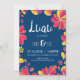 Um brilhante e colorido convite para festa temática do luau havaiano, com abstrato e um texto moderno de "luau". Perfeito para um casamento, chá de panela, festa de noivado, comemoração de aniversário ou chá de fraldas do estilo luau - para aquele fã da diversão e do sol.