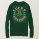 This is a forest green women's t-shirt. The t-shirt is a Basic Long Sleeve T-Shirt. The t-shirt features a Lucky Charmer Shamrock design on the front and back. The t-shirt is made of 100% cotton. This t-shirt could be worn for St. Patrick's Day and other occasions.