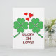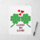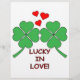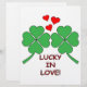 Sorte no amor. Desenhos de trevas de quatro folhas com formas cardíacas flutuando sobre elas.