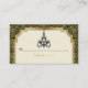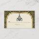 Art Deco chandelier black, cartão de lugar em ouro com um candelabro preto, uma fronteira no estilo Art Deco e padrão de onda de seigaiha japonês preto e ouro em bege/nu. Este elegante design é uma abordagem moderna a um estilo vintage/retro que se assemelha ao estilo Roaring 20 e The Excelente Gatsby. Faz parte de um casamento e é completamente personalizável.