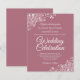 Estes convites para casamento baratos e amigáveis são a escolha perfeita para a aula, estilo e beleza num orçamento. O design apresenta colchas brancas de rendas florais nos cantos de um rosa empoeirado ou fundo cor-de-rosa mauve. A tipografia inclui a inscrição em rico para um estilo simples e elegante. Uma maneira maravilhosa de convidar seus amigos e família para compartilhar sua alegria em seu dia especial sem quebrar o banco.