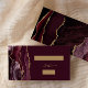 Este cartão de acompanhamento de casamento elegante e moderno apresenta uma borda de ágata em aquarela burgundy decorada com brilho falso dourado. A frente do cartão fornece espaços para o nome do convidado e número da mesa. A palavra "mesa" aparece em escrita à mão em dourado com floreios antes e depois em um fundo vermelho burgundy. Um design de ágata burgundy e dourado correspondente aparece no verso.
