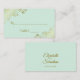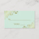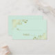 Estes bonitos cartões de escolta foram desenhados para ajudar os seus convidados a encontrar a mesa correta. Eles apresentam um design de gravação para que você preencha o nome do convidado e o número de sua mesa para facilitar a localização de seu assento. O fundo é uma cor verde de menta pálida com folhas de papel sujo e folhas de ouro sujas nos cantos. As costas têm os nomes do casal e da data do casamento.