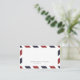 Vintage inspirou escolta por correio aéreo/design de cartão de visita. Divertido para um destino, vintage temed evento. O plano de fundo Red and Marinho Stripe continua ao contrário para adicionar pop de cor (inclua uma pequena nota de agradecimento ou outro texto de sua escolha).