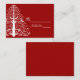 Personalize os elegantes cartões de local de Árvore de Natal Vermelha e Branca para Casamento de Inverno com o nome pessoal do seu convidado e a mesa em que eles se sentarão na sua festa de noivado de dezembro, chá de panela ou recepção de casamento. Esses cartões de acompanhamento de inverno personalizados apresentam um design intrincado de árvore de Natal branca em um fundo vermelho.