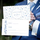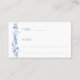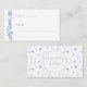 Cartões de lugar chatos de casamento com flores silvestres azuis marinhos botânicas elegantes, agarrados com a noiva refinada e nomes de noivos nas costas.