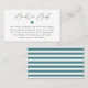 Chamada de assinatura elegante "Livros para Bebê", cartão de solicitação de livro de chá de fraldas. Os cartões apresentam sotaque cardíaco teal e padrão de estrias brancas e lacas correspondentes.