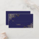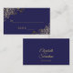 Estes bonitos cartões de escolta foram desenhados para ajudar os seus convidados a encontrar a mesa correta. Eles apresentam um design de gravação para que você preencha o nome do convidado e o número de sua mesa para facilitar a localização de seu assento. O fundo é uma bela cor azul-marinho com fritas de folhas de folhas falsas douradas nos cantos. As costas têm os nomes do casal e da data do casamento. Sugerimos usar uma caneta de tinta dourada para escrever sobre o fundo escuro.