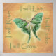 Esta poster inspiracional apresenta uma imagem de estilo aquarela de uma graciosa, verde-clara Luna Moth, flutuando contra um céu ouro e as afirmações, "Eu vou crescer, vou evoluir, vou viver, vou subir".
