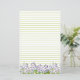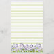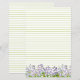 Uma papelaria verde floral monograma decorada com uma fileira de flores lupinas roxas pintadas com aquarela. No verso está o monograma que pode ser editado com cor e estilo de fonte. Excelente para escrevendo de cartas, registro em diário e muito mais.