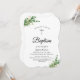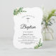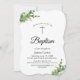 Convide seus entes queridos para um batismo maravilhosamente elegante com este convite maravilhoso e temático verde. Com delicada cor d'água, eucalipto azul e folhas verdes esmagadoras, esta design é perfeita para uma celebração refinada no quintal. Uma cruz eterno acrescenta um toque significativo, fazer ideal para um evento especial e memorável.