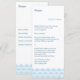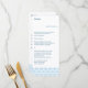 A simplicidade é chave neste cartão do menu do design do damasco. A tipografia clara e azul escuro mistura-se com uma luz - beira azul do damasco na parte inferior. O nome do evento é destacado na parte superior da página. Adicione um menu personalizado embaixo. Dobre tomado partido para adicionar o menu de um miúdo na parte traseira.