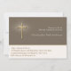 Um convite cristão à moda na luz - bronzeie e fora do branco com crucifixo do ouro e efeito de incandescência. Personalize para todo o evento religioso que inclui baptismos, batismo, primeiros comunhões santamente ou confirmações.