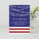 Um vermelho do divertimento, branco e azul 4o do convite de festas de julho com suportes de luzes e de listras da estrela. Este convite pode facilmente ser mudado para acomodar um partido incorporado. Apenas contacte-nos em prettyfancyinvites@gmail.com, se você precisa a ajuda com aquele.