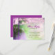 belo casamento roxo na praia ou cartão de casamento RSVP de destino com uma série de luzes penduradas nas palmeiras.