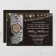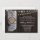 Luzes + Convites para Casamento de Árvores de Birch - apresenta fundo de madeira de celeiro impresso com uma árvore de pássaros em que você pode "entalhar" as iniciais e uma data de casamento. O design também apresenta luzes de string que brilham.