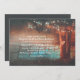 O convite de casamento russo mostra uma árvore com luzes de cordas suspensas e cerca rural. O coração do amor esculpido perfeito convida para o casamento de verão no pôr do sol. Inspirado por árvores e noites quentes de verão representa perfeitamente romance e faz esta atmosfera sonhadora.