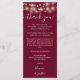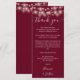 Um cartão de recepção de agradecimento de casamento burgundy elegante com belas luzes de corda. Personalizado com sua mensagem especial de agradecimento em tipografia elegante. Um agradecimento especial para seus convidados. Criado por Thisisnotme©