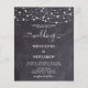 Convide amigos e familiares para o seu casamento com esses cartões de convite de casamento elegantes, porém rústicos, com quadro-negro e luzes de corda. Esses convites de casamento exclusivos em ardósia apresentam luzes de corda brancas elegantes em um design de ardósia de quadro-negro cinza. Personalize esses convites de casamento com quadro-negro com nomes, data e local do casamento. Veja nossa coleção de casamento para convites de casamento exclusivos, álbuns de fotos de casamento, livros de visitas, presentes de festa e muito mais! DIREITOS AUTORAIS © 2020 Judy Burrows, Black Dog Art - Todos os Direitos Reservados. Convite de Casamento com Luzes de Corda e Quadro-negro Rústico Econômico