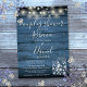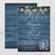 Um convite de chá de casamento rústico para casais com lindas luzes de corda e jarras de mason com tipografia estilosa, em um fundo de madeira rústica azul. Criado por Thisisnotme©