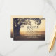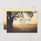 Árvore antiga e design caprichoso de luzes de corda românticas em cartões de recepção de casamento. Perfeito para temas de recepção de casamento de jardim, rústico ou vintage.