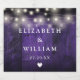 Estas etiquetas de vinho para casamento rústico em madeira boho com luzes de corda roxas podem ser personalizadas com suas informações em tipografia chic. Desenhado por Thisisnotme©