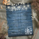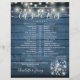 Este cronograma de casamento rústico e elegante, apresentando lindas luzes de corda e jarros de mason, pode ser personalizado com os detalhes do seu casamento em letras brancas elegantes sobre um fundo de painéis de madeira azul. Criado por Thisisnotme©