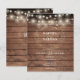 Com belas luzes de corda, seus nomes estão emoldurados por uma grinalda de louro acima da data do casamento e detalhes do local, em tipografia clássica e elegante sobre um fundo de madeira rústica, neste convite de casamento com orçamento acessível e com estilo. O lado de trás tem suas iniciais ou monograma emoldurado por uma grinalda de louro floral correspondente. Desenhado por Thisisnotme