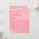 Convite de aniversário divertido e caprichoso com luzes de cordas brancas sobre um fundo de cor-de-água rosa-rústica. Outras cores estão disponíveis.