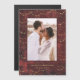 Este cartão de Natal magnético moderno apresenta um fundo crimson rico com luzes de fadas de ouro elegantes e falsas, e a sua foto pessoal favorita no centro.