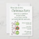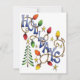 Fácil de personalizar o Convite de festas de Natal com a palavra Feriado nas Luzes de Natal. Os ornamentos retrorreflectores e doces enfatizam a parte de trás do convite. Vintage ilustration cartoon Feliz design de Natal com a palavra "Feriados" embrulhada com luzes de Natal amarelas, vermelhas e verdes. Cercado por estrelas de ouro brilhantes e uma árvore de Natal da floresta.