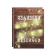 Papel de 110 lbs - Sinal de reserva dobrável - Corda de luzes de jarro de madeira russa do país de casamento, ramificação de árvore com folhas verdes dobrando o sinal reservado. O brilho das luzes acende as folhas verdes contra uma bela madeira rústica e marrom-escura. Esta design de casamento rústica é personalizável e perfeita para o seu belo casamento no exterior ou casamento ocidental. Você pode personalizar alterando o texto e adicionando imagens se quiser. Você também pode escolher um tipo de papel e uma espessura diferentes. Para itens correspondentes, consulte a coleção abaixo com outros itens na suíte de casamento rústico.