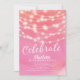Luzes modernas de cordas celebram o convite de aniversário definido em um fundo cor-de-água rosa. Ver a nossa correspondência para um toque especial extra.