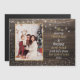 Este cartão com fotos magnético é um alternativo incrível para convites em papel e será amado por todos os que o receberem! Esta design apresenta um lindo fundo de madeira rústico com luzes de cordas bonitas e uma sutil cobertura de flocos de neve para lhe dar esse sentimento festivo. No lado esquerdo está sua imagem com uma delicada borda do ouro. À direita está uma tipografia elegante em forma de árvore de Natal que lê "Feliz Natal e Feliz ano novo com amor de" e então seu nome e data de família.