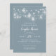 Barato casais impressos personalizados convites de chá com modelo fácil de usar para personalização. Este design de chico rústico apresenta cadeias de luzes brilhantes de cordas e frascos de pedras em um fundo azul empoeirado. Personalize o convite com os detalhes da sua parte ou personalize o texto a ser usado para qualquer evento. Use as ferramentas de design para escolher qualquer cor de fundo, adicionar fotos e personalizar as fontes de texto e as cores para fazer um design exclusivo para o chá de casamento dos casais.
