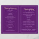 Luzes espumantes no céu cerimônia de casamento roxa e programa de festas com luzes amarelas brancas e pálidas que brilham sobre fundo de gradiente roxo. Este convite de casamento moderno, elegante e na moda faz parte de uma coleção de casamentos ou conjunto e é completamente personalizável perfeito para um casamento de verão ou de inverno. Você terá que dobrá-lo no centro. Escolha apenas este tipo de valor de papel à medida que ele se dobra bem.