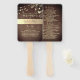 Mantenha os convidados frescos e informados com este elegante leque de mão de programa de casamento duplo. Apresenta um fundo de madeira falsa, sotaques florais dourados, luzes de corda e espaço para detalhes da cerimônia e nomes da festa de casamento. Um toque perfeito para celebrações de outono, rústicas ou ao ar livre.