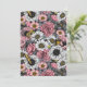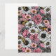 Várias flores e mariposas desenhadas à mão em rosa, cinza e amarelo