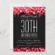 Cartão do convite de aniversário com as luzes Sparkling vermelhas. Imprima seus amigos com este design elegante e à moda do convite. Inteiramente customizável!