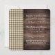 Um legal convite de aniversário que fará os hóspedes rir e avisá-los que é hora de comemorar. Uma cerca de madeira rústica com a mensagem "Comida, Booze e Más Danças Móveis" adiciona nome e idade. O backside tem um padrão legal de gingham no país bege com personalização linha a linha.