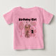 Um macaco rodeado de balões e flores cor-de-rosa senta-se em alguns presentes de aniversário e o texto diz "Birthday Girl 2" em t-shirts de segundo aniversário macaco, fatos-chave, cartas, sacos-tote, ímãs e muito mais.